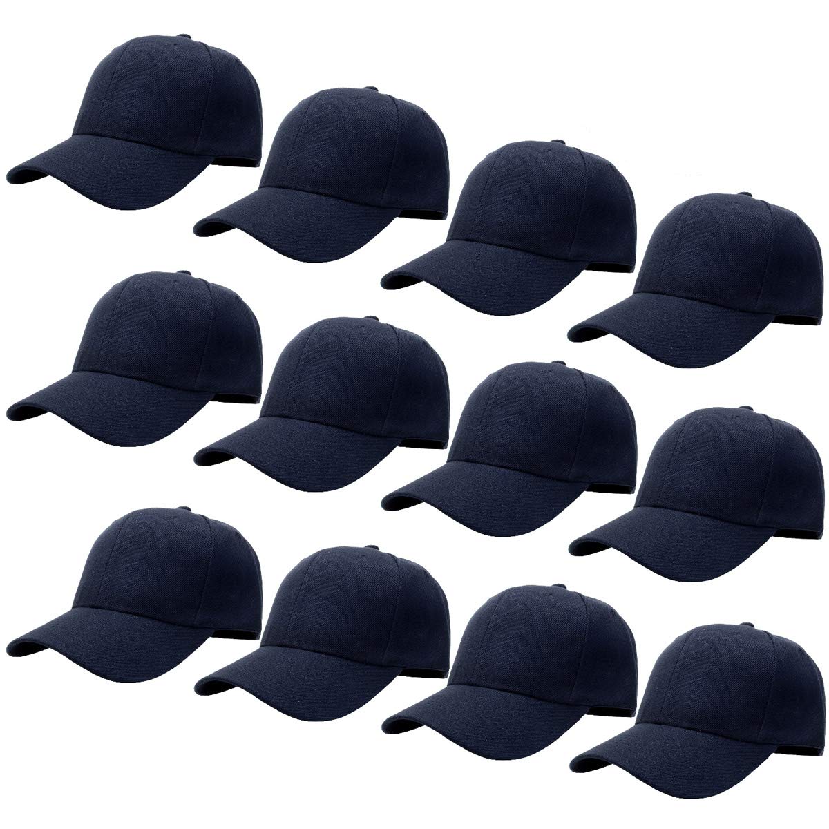 12-Pack Baseball Dad Cap Velcro Strap Adjustable Size - Navy