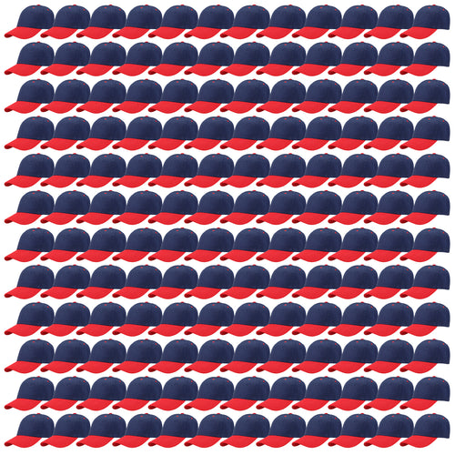144-Pack Baseball Dad Cap Velcro Strap Adjustable Size - Navy/Red