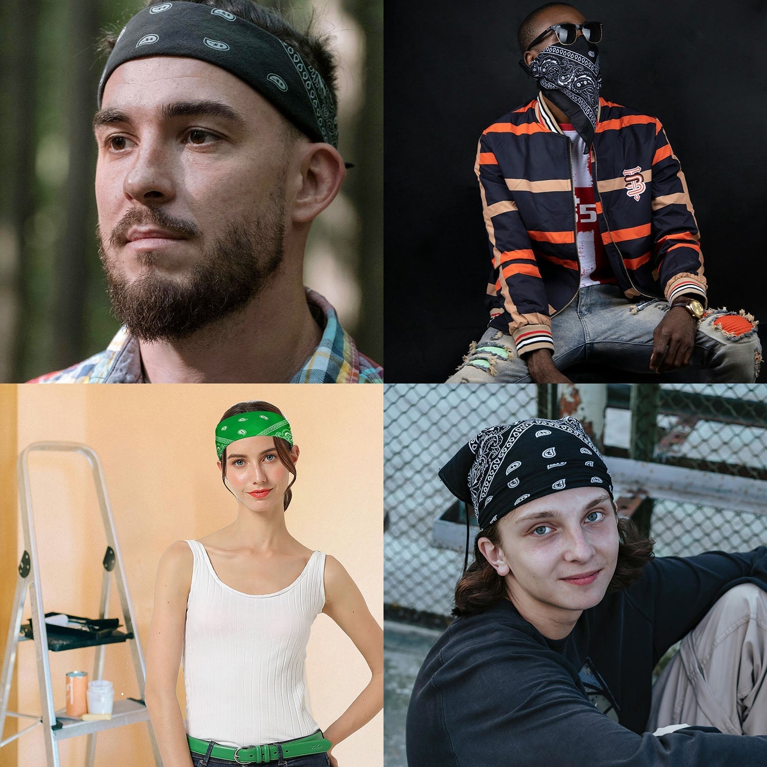 • Double-size printed paisley designed. You can wear them in many ways, such as face mask, headband, necktie, cowboy, wristband, neck band, hair tie, etc.
