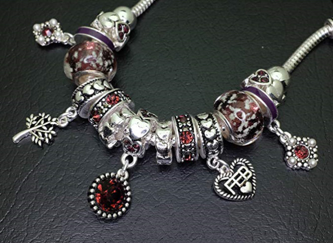 Birthstone Bracelet Multi-Color Charm Beads Silvertone