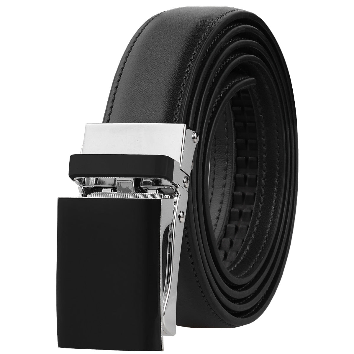 - 100% genuine leather, automatic buckle with 1" wide strap. Easy to put on, and Easy to take off by pull the buckle to release.