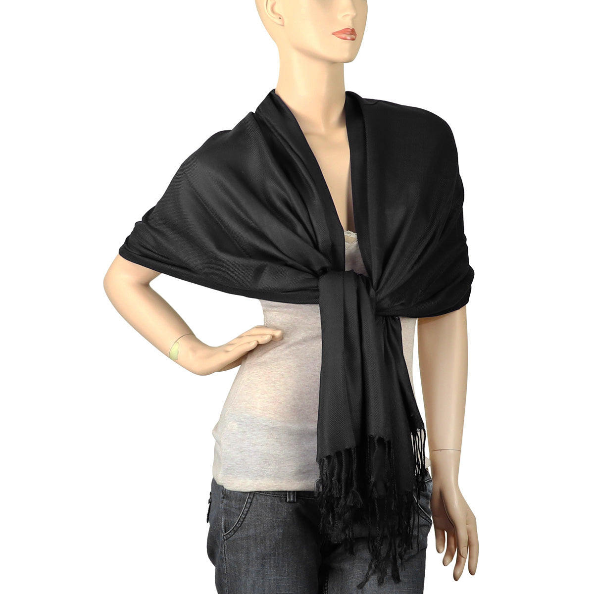 Women's Soft Solid Color Pashmina Shawl Wrap Scarf - Black