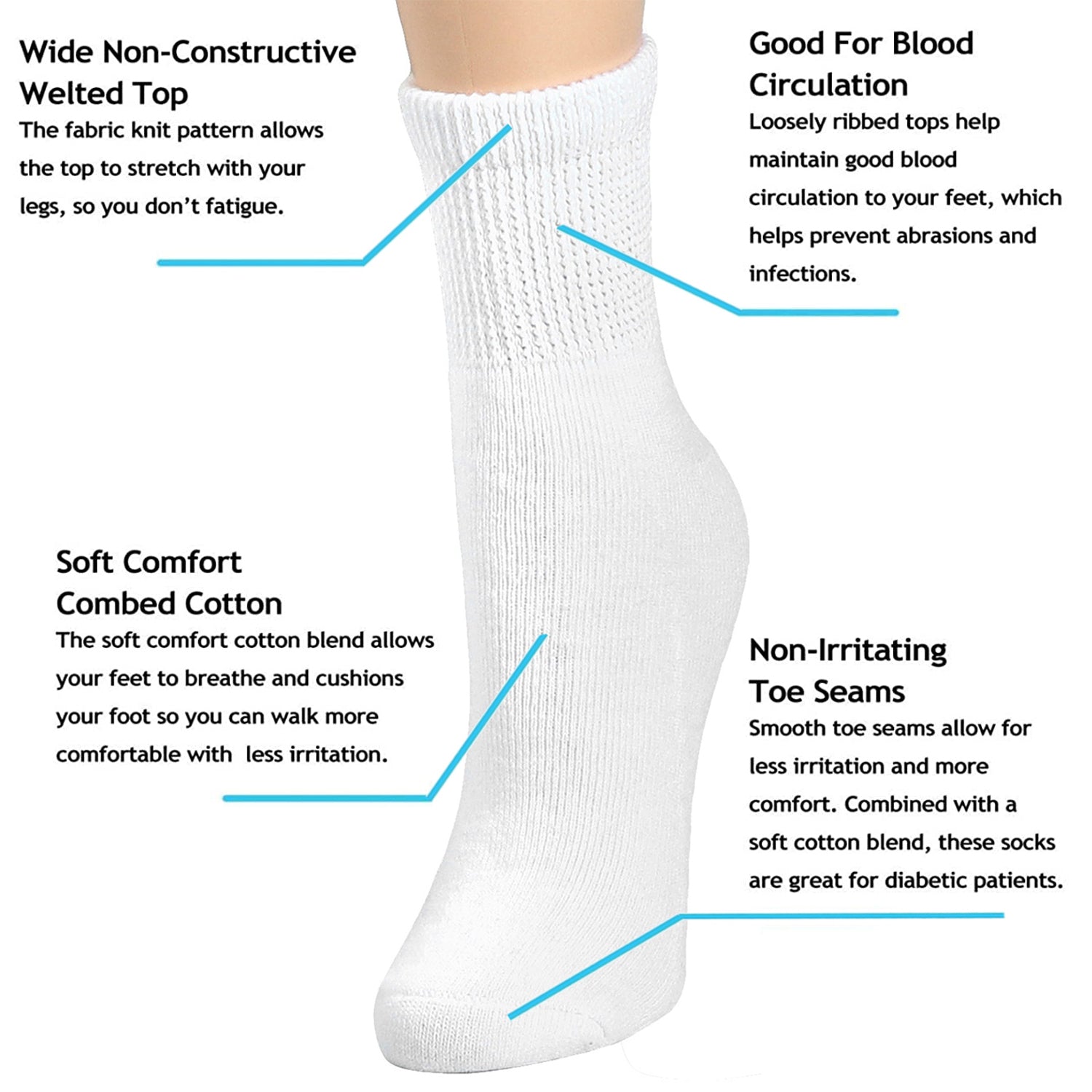 • Socks Designed: Loose fitting, non-binding top, increased blood circulation, non-irritating toe seams, and soft comfort combed cotton. The best thing is to help you live healthy and stay pain free.
