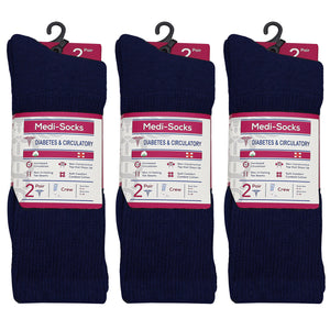 Falari Women Diabetic Socks Diabetes Edema and Circulatory Loose Fitting Cotton Crew Socks - 6 Pairs Navy